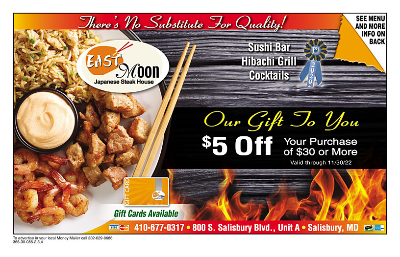 East Moon Japanese Steak House Coupon Promo Salisbury Md Money Mailer